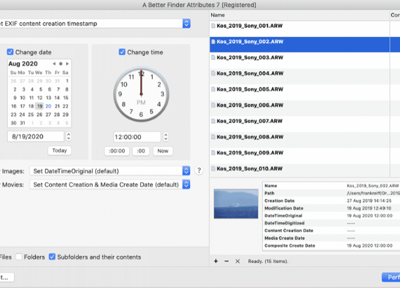 A Better Finder Attributes allows you to change file and photo dates and times, as well as other usefull file…